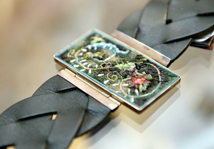 "I brought to the exhibition silver jewelery and small enamel paintings, which demonstrate one of the oldest techniques of applied arts," says jewelry designer Tamta Alkhazashvili. "Drawings and ornaments are made of different materials - ceramic, glass, stone. In my works I use special materials from the north of Italy, combined with gold, silver and precious stones."